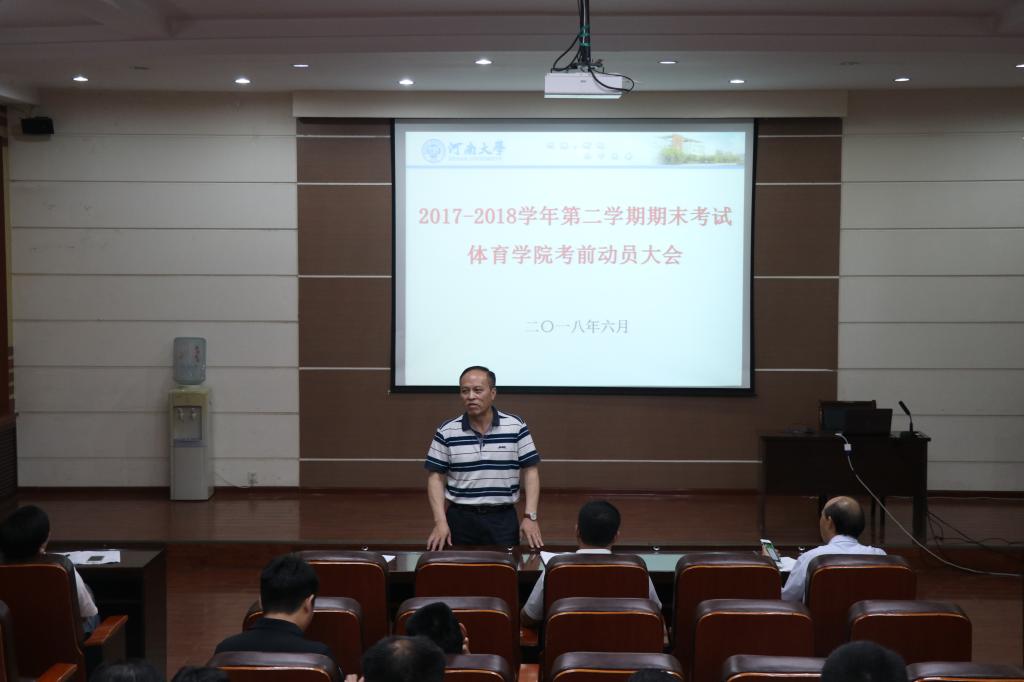 在全院教职工考前动员会上,副院长张慧传达了学校、学院党政领导班子关于做好2017-2018学年第二学期期末考试工作的安排意见,并就考务工作和期末考试日程以及复习考试过程中注意事项进行了具体安排,随后宣读了《3044am永利官网考试工作管理条例》、《3044am永利官网教学事故认定及处理暂行规定》、《3044am永利官网教师教学工作条例》等有关文件精神,强调了考试的严肃性。大会由院党委书记杨军主持。