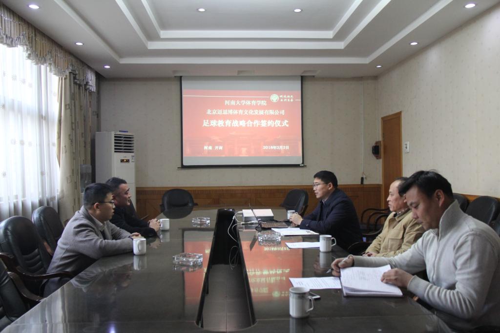 张大超首先向白冰一行的到访表示热烈欢迎,并结合学院的定位和发展阐述了与北京迈思博体育文化发展合作的优势和前景,围绕筹备设立“国际足球学院”中外办学项目、教练培训基地项目、足球学术论坛访学研讨活动等进行合作说明。