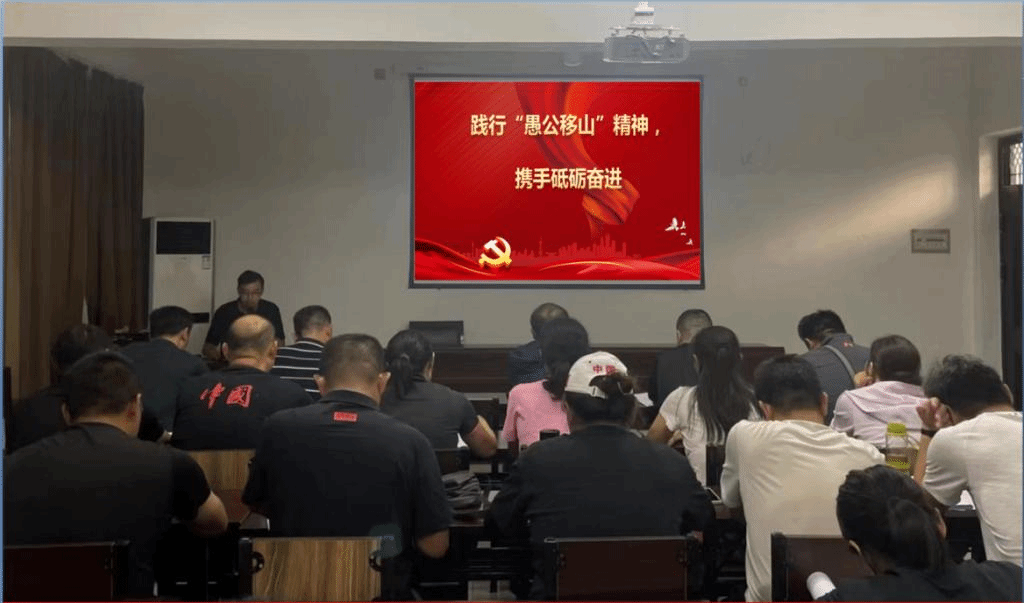 现场教学结束以后,公共体育第二党支部支部书记袁玉斌同志在会议室给大家上了一堂“践行愚公移山精神,携手奋力前行”的党课。