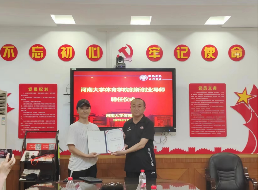 周珂首先代表学院向受聘创新创业导师——程丹彤老师表示祝贺和感谢,并指出,学院一直高度重视、着力培养学生的创新创业能力,注重创新创业教育,希望程老师能以健身操舞为切入点,充分发挥其创新创业、教学、资源、平台等作用,为学院创新创业教育的进一步改革发展和创新创业人才的培养作出贡献。