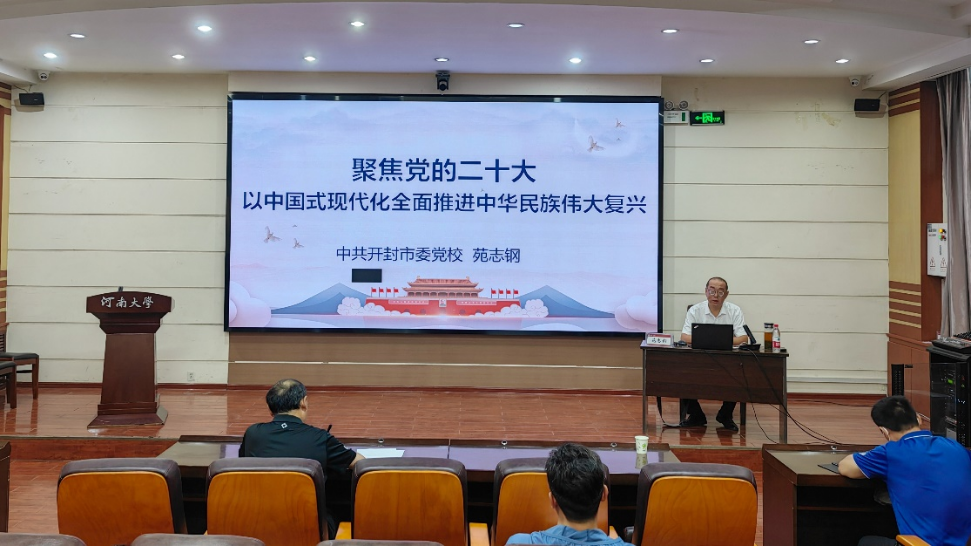 苑志钢作《聚焦党的二十大,以中国式现代化全面推进中华民族伟大复兴》的辅导报告,从五个方面做了深入解读,一是中国式现代化的共性;二是中国式现代化五个特色;三是中国式现代化的本质要求;四是实现中国式现代化的战略安排;五是牢牢把握五个重大原则。并指出,大家要认真学习党的二十大精神,认真学习习近平新时代中国特色社会主义思想,认真学习中华优秀传统文化,做不惑不忧不惧之人。