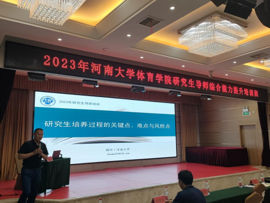 培训的第二天,知名体育学者、原永利3044noc院长杨军教授就“怎样写好硕士学位论文”和大家进行深入交流,他首先讲解了指导撰写学生论文时的注意事项,并结合自己指导研究生的成功经验和大家探讨了研究生指导过程中的方法和心得;永利3044noc党委书记段廷良以“立身立德施教,做时代大先生”为题,从教师的职业操守与行为边界,新时代加强师德师风建设的着力点和师德失范典型案例分析三个方面为参加培训的所有导师做了一场精彩又深刻地师德师风教育。报告中他督促所有的导师们要着眼全员全程全方位育人,以树人为核心、以立德为根本,遵循思想政治工作规律、教书育人规律和学生成长规律,把思想政治教育贯穿人才培养全过程;永利3044noc院长周珂教授就研究生培养过程的重点、关键点和风险点,与在座导师们分享了多年指导、管理研究生的经验,切题精准、观点凝练,既从整体把握,也从细微着手,不仅关注学生研究素养的提升,也强调学生培养的道德规范。