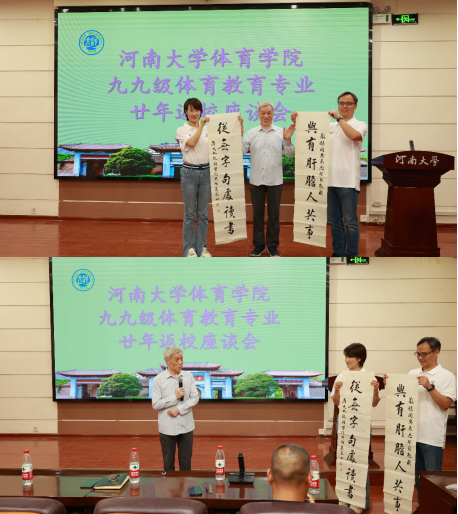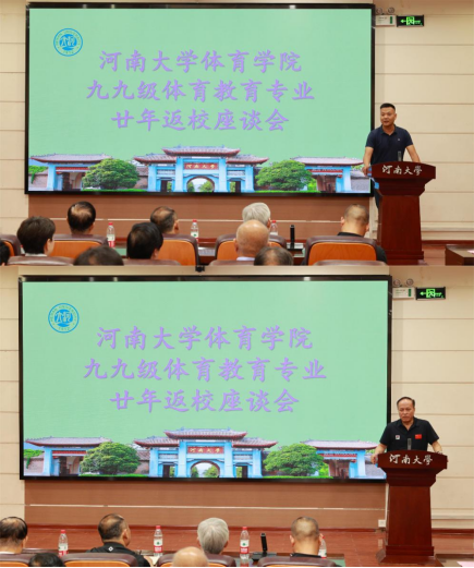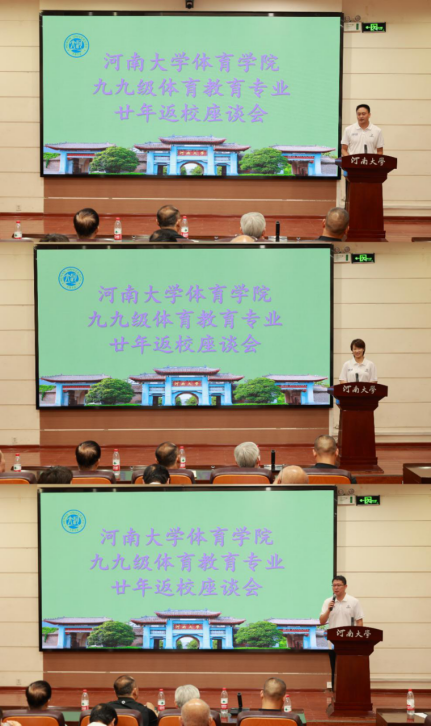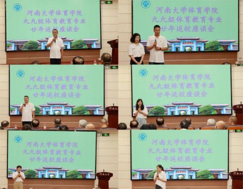 九九级校友代表旦祥胜、范东芳、芦云飞讲话。三位校友纷纷表示,在河大的四年是九九级学子们终生难忘的记忆。学校不仅传授了他们知识和本领,更塑造了正确的价值观和人生观,这些足以为他们的人生照亮方向,指明道路。他们对母校和恩师们的辛勤培育表示诚挚的感恩,希望能以此次返校为契机,加强校友们之间的沟通。