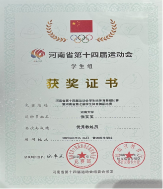 队员们的优异成绩,离不开教练员在平日教学、训练中悉心指导与默默付出。张笑笑老师获“优秀教练员”称号。