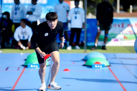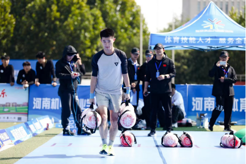大赛最精彩的是体能比拼,现场气氛紧张激烈,荷尔蒙爆棚。该环节主要考察选手肌肉力量、耐力、速度、协调性等,参赛选手需依次完成100次跳绳、沙袋过杆、折返跑、BOSU半球标志盘捡取、健身球带球爬行5项测试。体能比拼赛各组别前30名选手进入理论知识竞答环节,前两个环节比赛总成绩的各组别前15名进入运动计划设计竞赛环节。最终获得职业组第一名的选手可申报“河南省五一劳动奖章”。