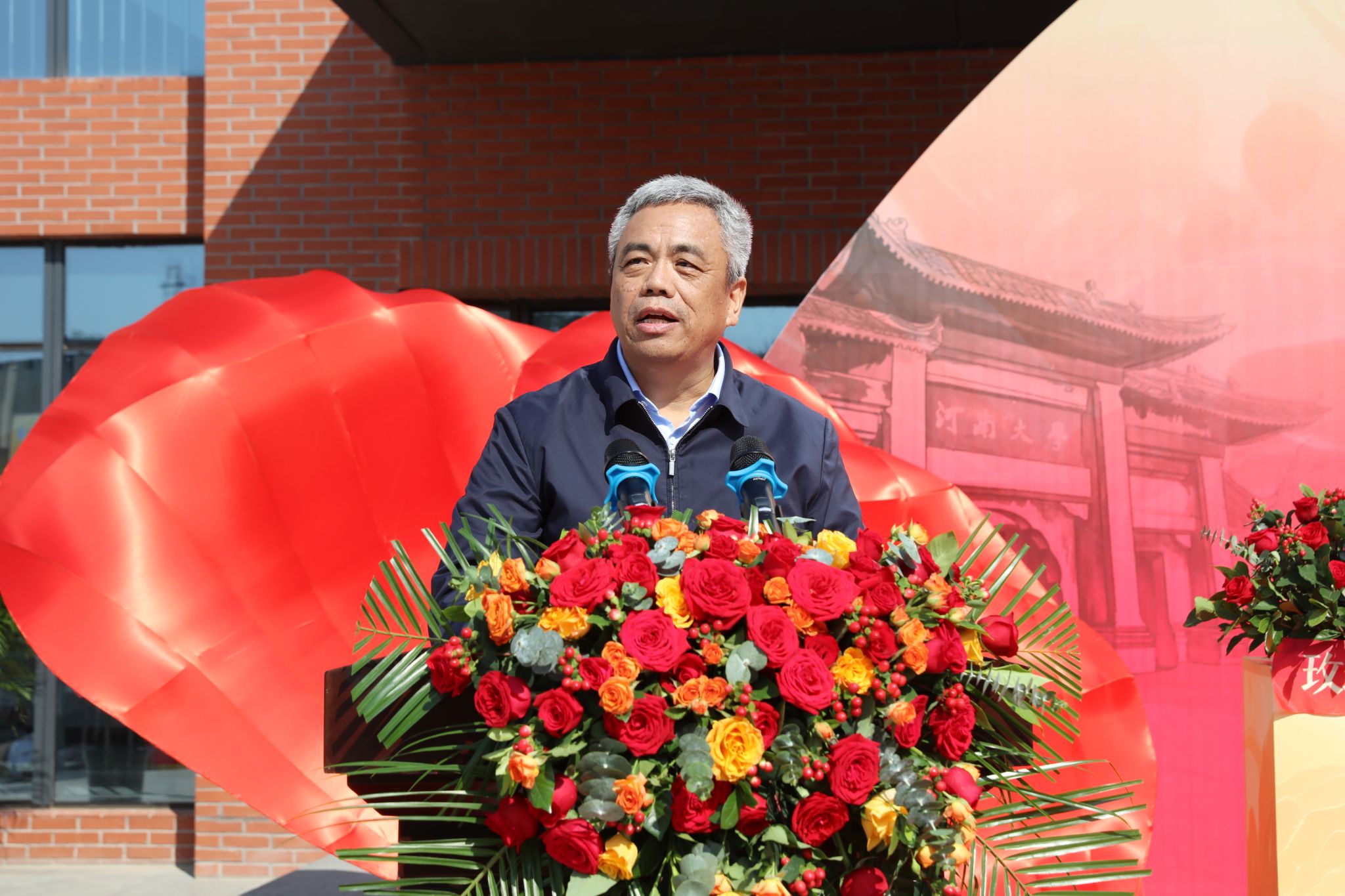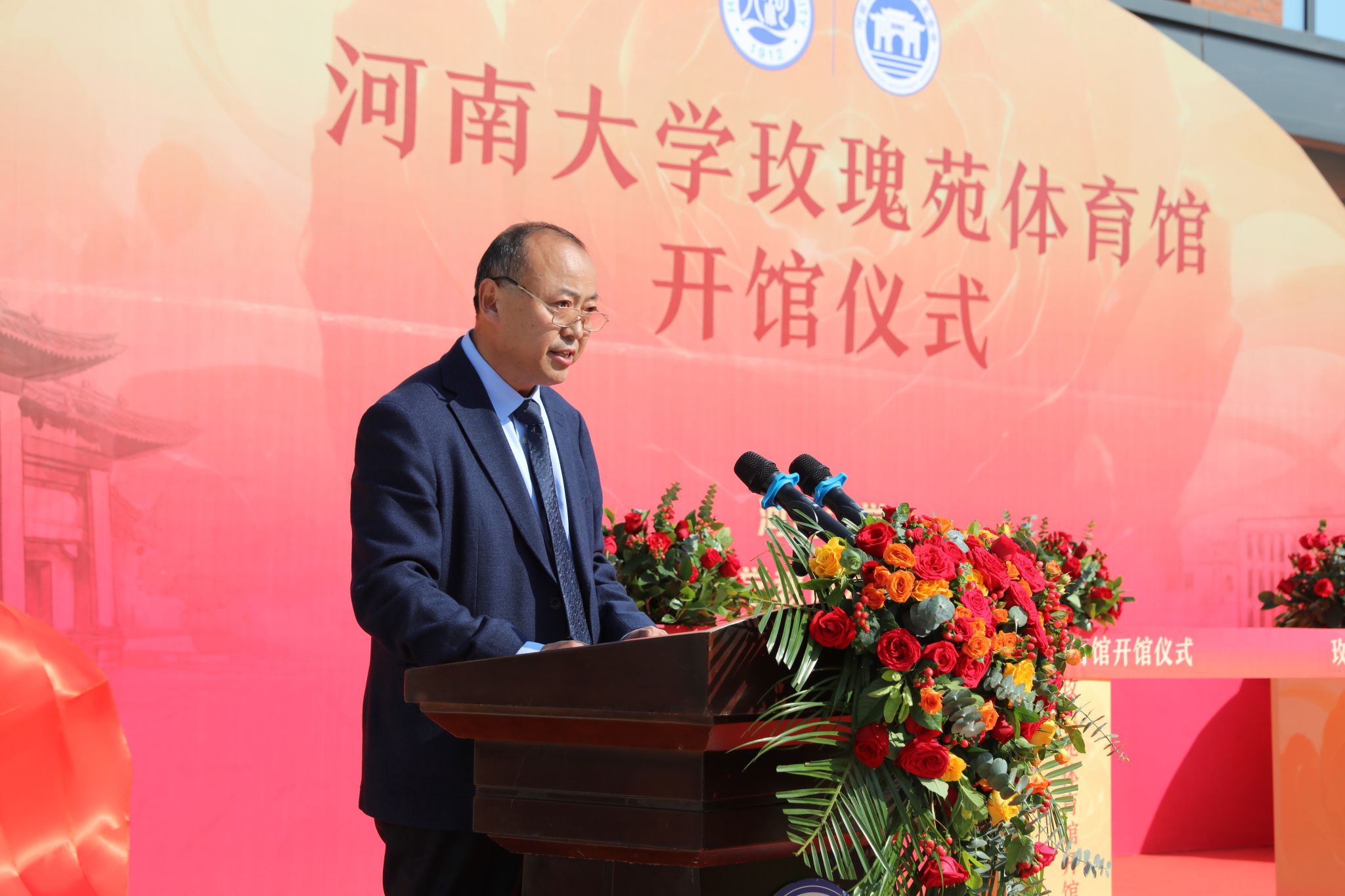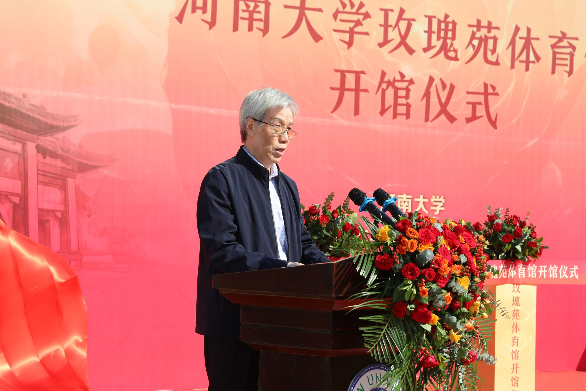 但斌在致辞中表示,自己能在青葱岁月求学于河大,师承德高望重的高凤山先生,是何其有幸;能在毕业多年后为母校的升级发展略尽绵薄之力,并屡次见证其蝶变时刻,是何其荣光。近三年来随着郑州校区的顺利启用、铁塔湖畔“缤纷两岸”的建设以及玫瑰苑体育馆的落成开馆,这份献给母校百十年华诞的时光之礼,终已融入百年学府的血脉,完成新的蜕变与发展。他希望玫瑰苑体育馆能与母校的校训校风相互映照、同频共振,孜孜传承历经百十年风雨淬炼的河大精神,激励河大学子不忘初心、牢记历史、奋发进取。