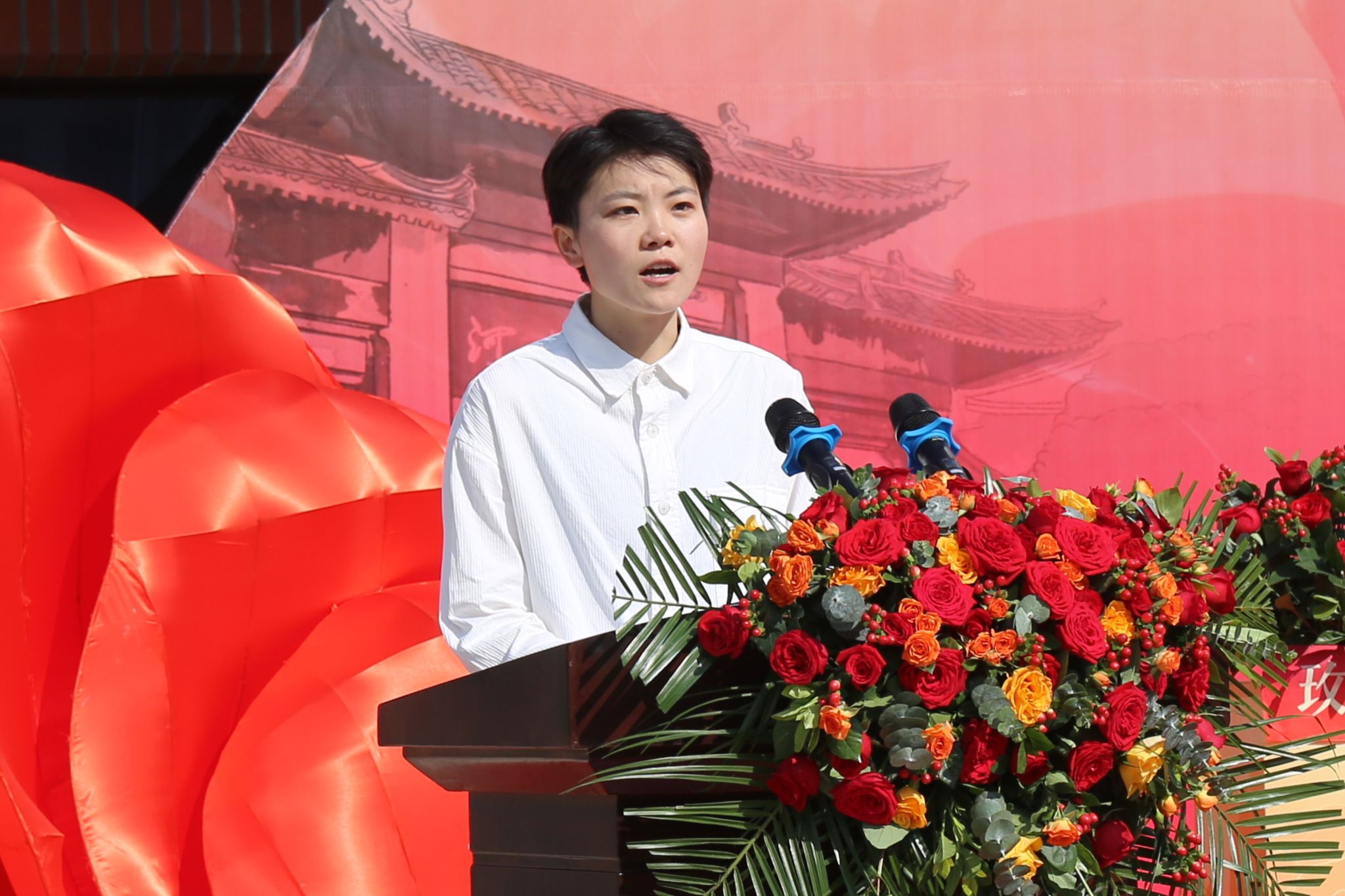2022级硕士研究生孙天悦作为学生代表向但斌表达了真挚的感谢。她表示,玫瑰苑体育馆的建成和使用,意味着同学们将拥有更优越的学习和锻炼环境。体育馆将成为校园生活中美好回忆的一部分。期待与大家一起在体育馆里挥洒汗水、竞技比拼、共同进步,成为时间的玫瑰,不负“铁塔牌”体育人之名。
