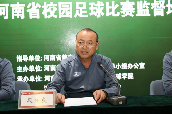 段廷良代表永利3044noc、国际足球学院对河南省校足办的信任表示感谢,对参培的各位学员表示热烈欢迎。段廷良表示,比赛监督对于建立健康的校园足球竞赛文化、激发广大大、中、小学校积极参与足球赛事、创造公平、公正与健康的比赛环境责任重大、任务艰巨、使命光荣。工作在校园足球一线的比赛监督、工作人员应该不忘“育人为本”初心,一起为推动校园足球的“融合发展”做出更大贡献。