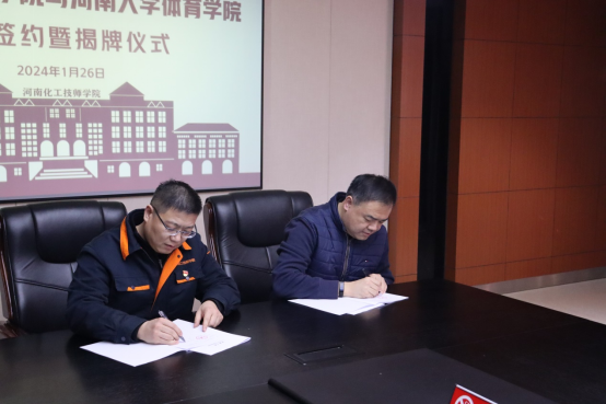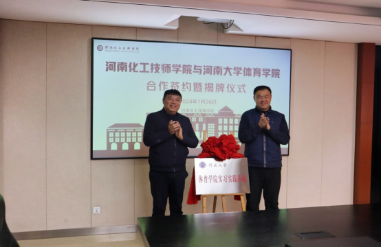 岁序更替,华章日新。1月26日下午,永利3044noc与河南化工技师学院举行实习实践基地合作签约暨揭牌仪式。双方对此次合作高度重视,永利永利3044noc副院长姚远和研究生办公室主任时震宇出席本次签约暨揭牌仪式;河南化工技师学院副校长于海、副校长朱登朝、教务处处长丁惠平、体育中心主任李慧杰,以及体育中心教师王腾飞、张广寅教师代表参加仪式。会议由丁惠平主持。