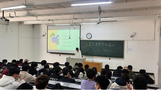 活动中,黄鑫宇同学担任讲解员,分为四个部分进行详细讲解,首先让同学们了解什么是消费者权益日,接着通过举例让同学们清楚的认识到自己的消费权益有哪些,中间还有知识问答环节,为同学们答疑解惑,让同学们充分认识到消费安全和消费的权益保障,更好的提升同学们的消费安全意识。还有市场上各种假冒伪劣现象,比如盗版书,三无食品,假冒商标产品等等以实际案例为基础,深入浅出地讲解如何辨别假冒伪劣商品、如何防范消费陷阱及在消费过程中遇到问题时如何依法维权等知识,提高了大家的依法维权意识,以及对相关法律、法规的认识和理解,最后教大家如何正确的维护自己的消费权益。