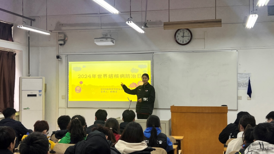 活动中,颜语洁同学担任讲解员,以问答的形式,吸引了同学们的广泛参与。活动中设置多个问题,以宣讲人和同学们互动的形式进行交流,包括疾病的传播途径、预防措施、症状识别以及治疗方案等。此外,还通过展板、视频等多种形式,生动地展示了结核病的危害和防治。