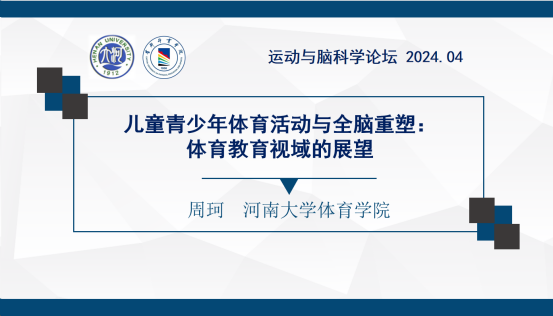 在论坛中,周珂教授发表了题为《儿童青少年体育活动与全脑重塑:体育教育视域的发展》的主题汇报。他指出,体育运动不仅是一种重要的生活方式和学习经验,而且对儿童和青少年的大脑结构发育及功能活动有着显著影响。他详细解释了体育运动提升执行功能、影响海马和大脑内侧颞叶等记忆相关脑区,以及缓解焦虑和提高心理韧性的作用,从而改善儿童和青少年心理能力和心理健康。接着,他结合《体育与健康课程标准》2022年版,重点探讨了“专项运动技能”部分包含的六大类运动的核心心理特征,阐释了不同运动项目对儿童青少年全面发展的价值。最后,周珂教授根据新课标中的核心素养三个维度和四个水平,全面解读了运动技能、健康行为和体育品德中涉及的心理指标,并分析了这些指标的潜在脑机制和可能用于实践的客观测量方法。