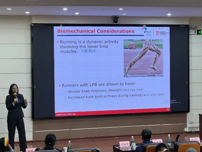其次,江姵燁教授通过生物力学分析手段确定了休闲跑步者中导致腰痛的肌肉及骨骼危险因素。江姵燁教授指出,与传统的腰部锻炼相比,8周下肢运动训练在提高跑步能力、膝关节伸展力量和跑步步态方面有更优越的效果。