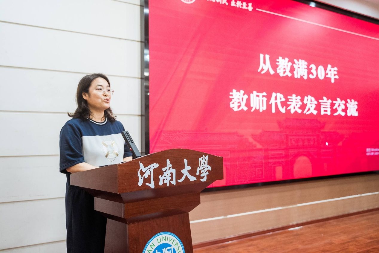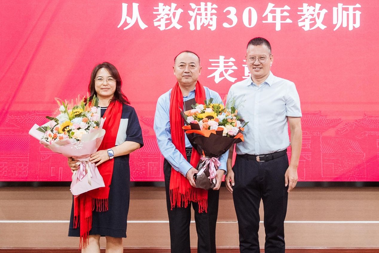作为从教满30年教师代表,吕旭涛在发言中动情地分享了自己成长为一名高校教师的艰辛历程,以及在从教路上收获的丰硕成果与无悔幸福,其真挚的讲述深深打动了在场所有人。