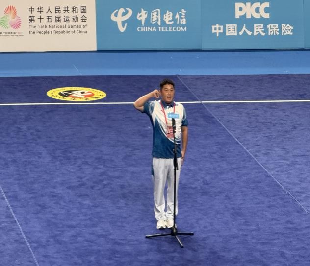 9月27日,中华人民共和国第十五届运动会群众展演太极拳项目决赛在广东佛山圆满落幕。中华人民共和国第十五届运动会群众展演太极拳项目的成功举办是贯彻落实习近平总书记关于体育工作重要指示精神和全民健身国家战略的生动实践,是推动群众体育与竞技体育全面发展、构建更高水平全民健身公共服务体系的具体举措。本次赛事紧扣“全民全运、同心同行”主题,汇聚了全国56支代表队、共计610名运动员,设三项拳术、三项器械共六个项目展开角逐。永利3044noc金龙副教授受聘担任大赛技术官员,并代表全体裁判员宣誓。在执裁过程中,他恪守竞赛规则,坚持公平公正,以专业的评判和严谨的态度赢得各方好评,展现了出色的专业素养与职业精神。
